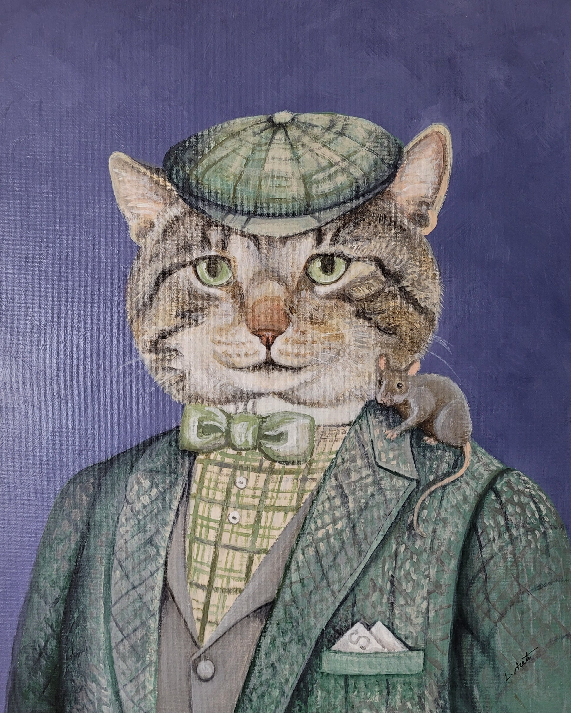 If you fancy your pet (ANY pet...dog, cat, bird, lizard, pig, horse...whatever!) in a special costume, here's the perfect pet portrait style for you. This hand-done painting (no computers are involved) will be acrylic on stretched canvas, with finished edges so there's no need to frame. Once you make your purchase, we will communicate closely via e-mail throughout the creative process to create a piece of art you will treasure. You will e-mail one or more photos of your pet, and will name the costume or scenario you're interested in. I will send you a preliminary sketch before painting, then an image of the finished painting for your final approval before shipping. Please allow 1-2 weeks for completion. Truly a one-of-a-kind gift! Made in USA (NJ). Free USA Shipping. Email for cash and carry discount.